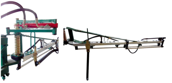 噴桿:噴桿經由進程起落架吊掛于機架上,共有九節構成,用于牢固噴頭體。擺布各四節,運輸或地頭轉彎時,其向后折疊后,牢固于機架上;噴霧功課時,舒展后,起落至恰當高度停止任務。