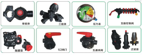 噴霧節制體系:噴霧節制體系首要由球閥、調壓閥、分派器、過濾器、攪拌器、噴頭、壓力表、PVC管、膠管等構成,其首要用來節制噴霧量、噴霧壓力、加水、加藥、攪拌、洗濯等。詳細操縱詳見功課前與功課進程中的調劑。